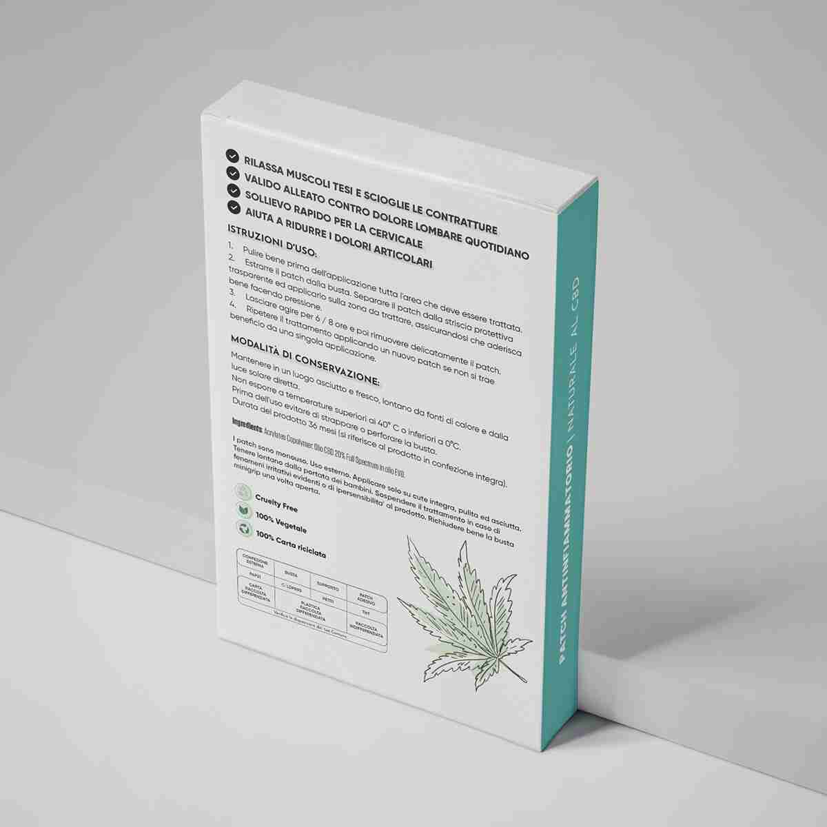 Abbiamo quindi trasferito gli stessi principi attivi all’interno di cerotti al CBD, pratici e facili da applicare.
