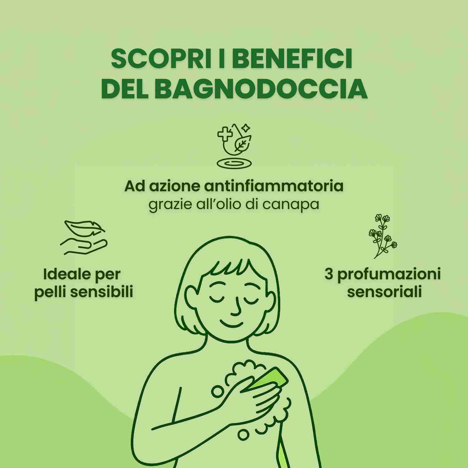 Le nostre 3 amatissime fragranze naturali per accontentare tutti i gusti. Lasciati avvolgere da una schiuma morbida e delicata, rispettosa anche delle pelli più sensibili. Prevengono irritazioni, rossori e prurito e calmano la pelle dopo l’esposizione solare.