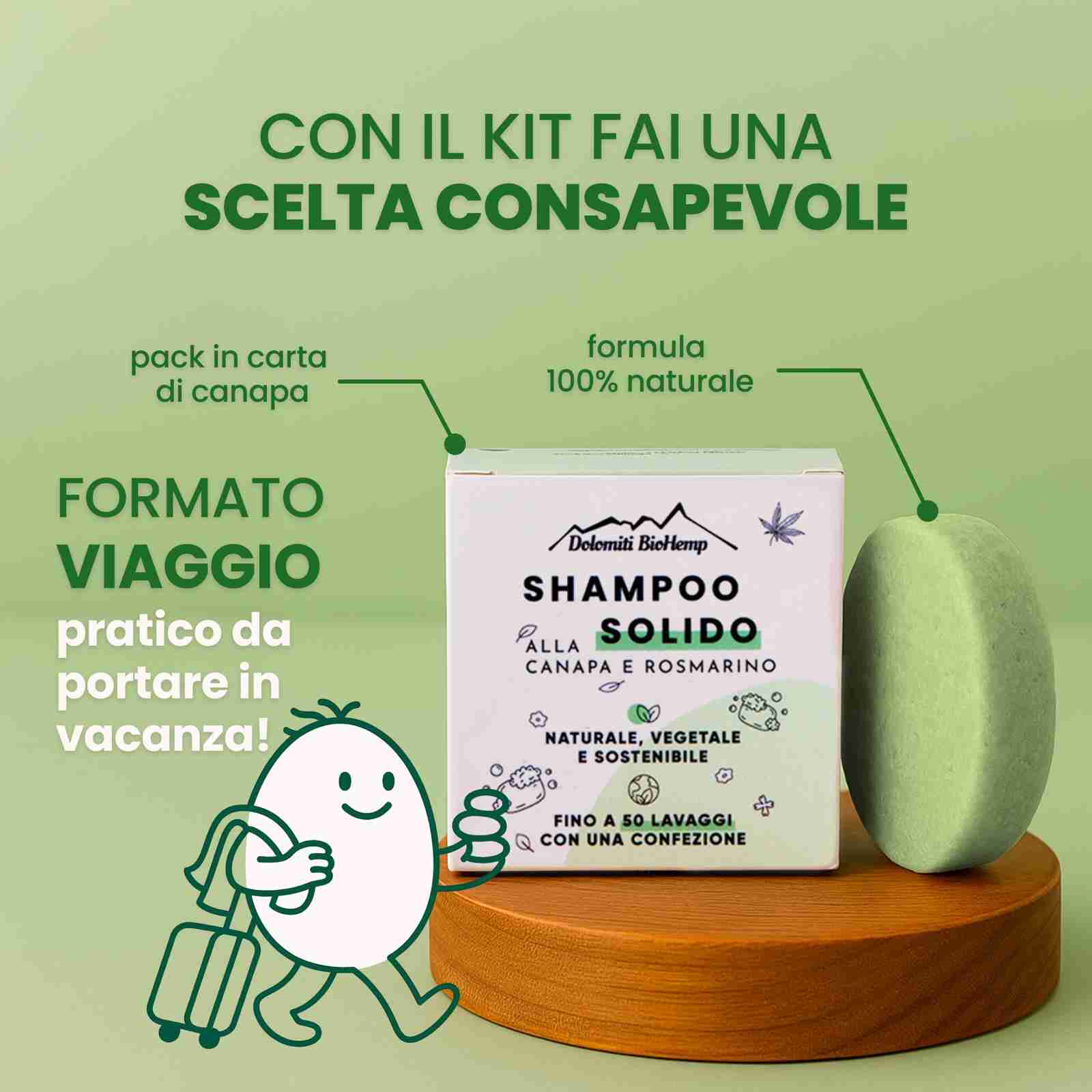 Packaging plastic-free 100% in carta di canapa e cosmetici solidi altamente concentrati: durano fino a 50 lavaggi e impattano meno sull’ambiente.
