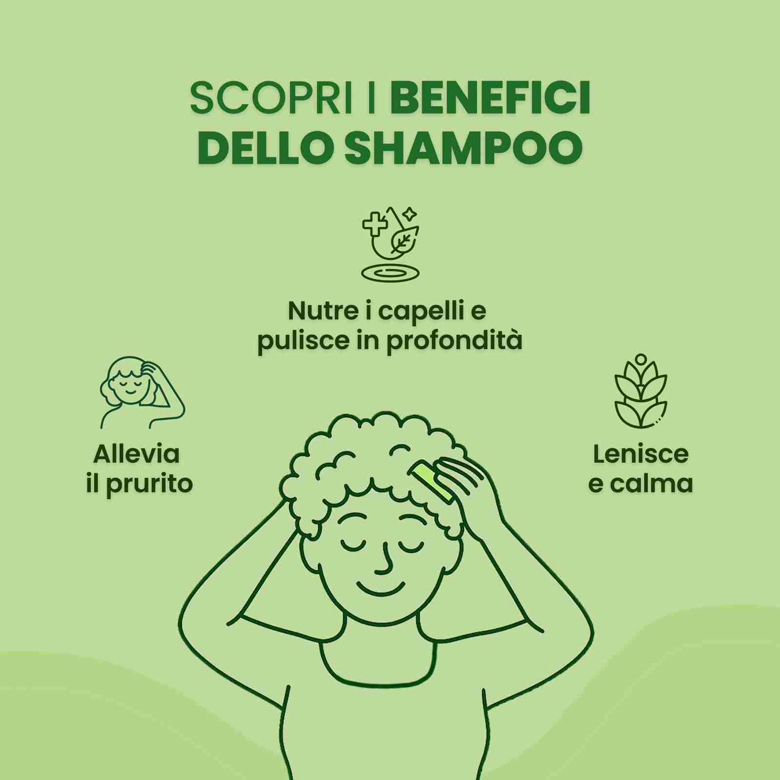 Deterge in profondità e rafforza i capelli, stimolando la circolazione del cuoio capelluto. Ideale per un uso frequente, anche per cuti con forfora o dermatite.