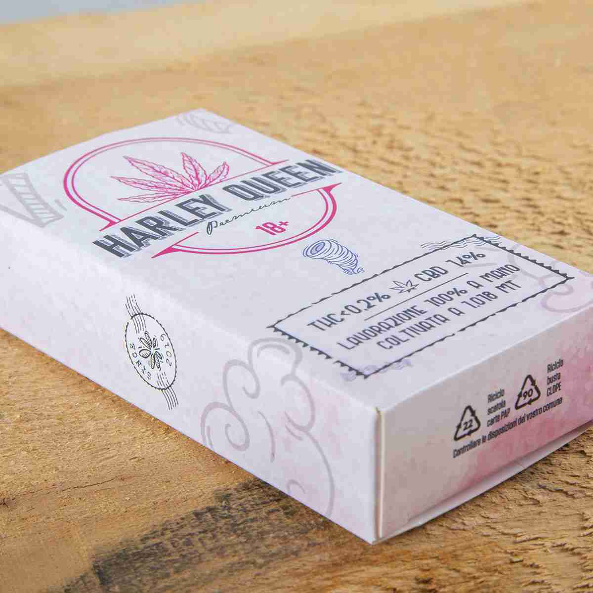 L’elemento distintivo della nostra Harley Queen è l’alta concentrazione di CBD: ben il 14%. Parliamo di una sostanza naturale, contenuta nelle piante di canapa e nota per le sue immense proprietà benefiche e calmanti.