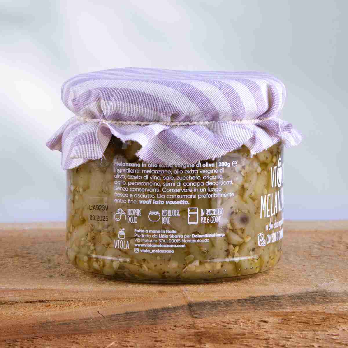 Aubergine in EVO oil with hemp seeds – 100% italian – 280 gr